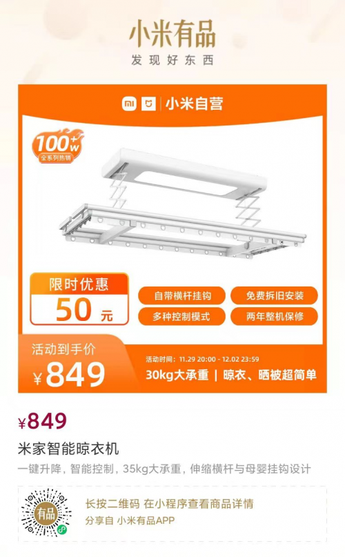 米家智能晾衣機的價值不是自己定義,它是由百萬用戶的良好體驗鑄成。100萬只是開始,米家智能晾衣機步履不停,下一個100萬,在路上!