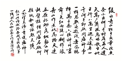 在京期間,陳登祥多次為社會知名人士書寫宣傳中國傳統(tǒng)國學的作品,同時,還曾為俄羅斯、烏克蘭、巴基斯坦等外國大使館創(chuàng)作作品,深受各界友好人士的一致好評。曾有人這樣形容他的字:肥而有骨,活潑靈動,上下硬帶,左顧右盼,錯落起伏,躍然紙上,在流動的線條中,方圓、疏密、大小、長短、粗細、濃、淡、枯、濕,多變靈活,大氣磅礴如行云流水……