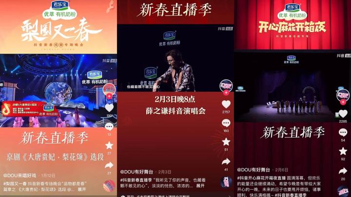 同樣是在今年CNY活動(dòng)期間,優(yōu)萃有機(jī)奶粉合作了《梨園又一春》、《薛之謙演唱會(huì)》、《開(kāi)心麻花開(kāi)箱夜》等自帶關(guān)注度、話題性和高熱曝光的直播項(xiàng)目,這其中涵蓋戲曲、音樂(lè)、小品等多類(lèi)型,滿足了不同圈層受眾的內(nèi)容需求。無(wú)論是別致氣韻的戲曲盛宴、讓人捧腹的喜劇專場(chǎng)還是高品質(zhì)音樂(lè)沉浸表演,都將春節(jié)氛圍拉至高潮,而借勢(shì)節(jié)目本身的影響力和傳播力,優(yōu)萃有機(jī)奶粉在收獲不俗流量的同時(shí),再一次將“讓小寶寶先吃上有機(jī)食品”的品牌信息進(jìn)行了生動(dòng)植入。