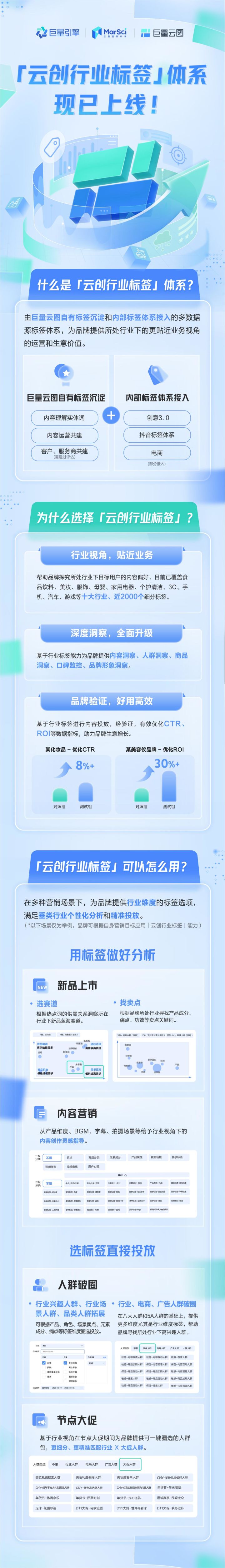 目前,「云創(chuàng)行業(yè)標(biāo)簽」已覆蓋食品飲料、美妝、服飾、母嬰、家用電器、個(gè)護(hù)清潔、3C、手機(jī)、汽車、游戲等十大行業(yè)、近2000個(gè)細(xì)分標(biāo)簽。這些標(biāo)簽與行業(yè)的具體業(yè)務(wù)場(chǎng)景緊密相關(guān),且包含內(nèi)容洞察、人群洞察、商品洞察、口碑監(jiān)控、品牌形象洞察等細(xì)分維度洞察。經(jīng)驗(yàn)證,基于行業(yè)標(biāo)簽進(jìn)行內(nèi)容投放,可有效優(yōu)化CTR、ROI等數(shù)據(jù)指標(biāo),助力品牌生意增長(zhǎng)。