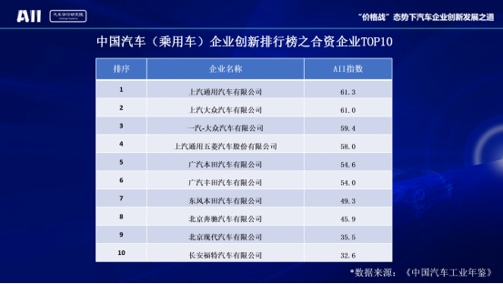 中國汽車(乘用車)企業(yè)創(chuàng)新排行榜之合資企業(yè)TOP10