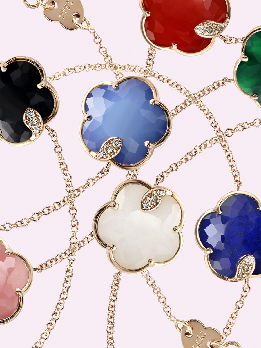 “Petit Joli”甄選系列由品牌經(jīng)典標(biāo)志性系列“Bon Ton”衍生而來,不僅延續(xù)了“Bon Ton”經(jīng)典的五瓣花朵造型和精湛的切割鑲嵌工藝,更以自然界中的“天空”、“大地”、“月亮”和“花朵”等主題為靈感,甄選不同顏色的天然寶石,為經(jīng)典之作注入煥新色彩,釋放雋永美感。