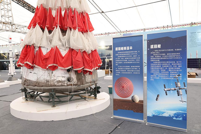 巡展現(xiàn)場的返回艙實物及返回艙降落傘