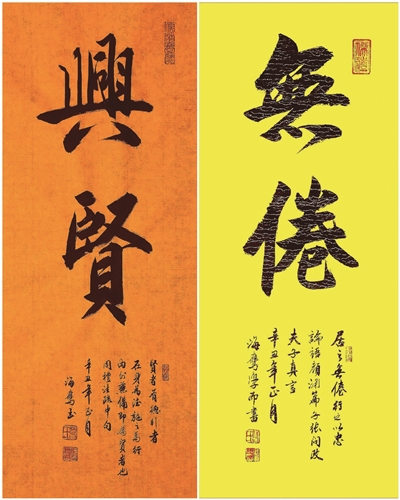 書法是中華優(yōu)秀傳統(tǒng)文化的重要構成之一,也是人類文明的瑰寶。葛海鷹對中國優(yōu)秀傳統(tǒng)文化擁有十分自信的態(tài)度。在他看來,學習書法既是個人的興趣愛好和修身養(yǎng)性良方,也是為傳承和弘揚中華優(yōu)秀傳統(tǒng)文化、彰顯人類文明的光輝盡一份力,更是堅定我們文化自信的一種具體實踐。葛海鷹將自己的書齋取名“三忘齋”,即是借用《論語》“發(fā)憤忘食,樂以忘憂,不知老之將至”句意,以激勵自己不懈努力,追求忘我境界。