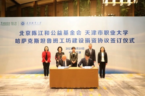 5月10日,北京陳江和公益基金會(huì)支持天津市職業(yè)大學(xué)魯班工坊簽約儀式在天津舉行。該捐贈(zèng)主要用于資助即將在中亞國(guó)家哈薩克斯坦開展的、“一帶一路”相關(guān)項(xiàng)目——魯班工坊的建設(shè)。