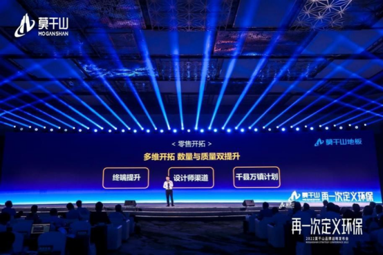 發(fā)布會(huì)上,莫干山板材宣布將通過(guò)品牌、產(chǎn)品、渠道、服務(wù)、速裝等五輪驅(qū)動(dòng)戰(zhàn)略,合力推動(dòng)莫干山板材百億計(jì)劃,實(shí)現(xiàn)占領(lǐng)ENF品類、占領(lǐng)ENF環(huán)保知識(shí)、占領(lǐng)ENF環(huán)保技術(shù)的戰(zhàn)略愿景。品牌戰(zhàn)略以ENF級(jí)環(huán)保板材領(lǐng)導(dǎo)者為中心,通過(guò)飽和式宣傳搶占用戶心智,霸占ENF級(jí)環(huán)保,同時(shí)開(kāi)啟全員營(yíng)銷(xiāo)“達(dá)人計(jì)劃”。產(chǎn)品戰(zhàn)略上通過(guò)1+N模式全面聚焦ENF級(jí)環(huán)保板材,以豆茵板作為ENF級(jí)環(huán)保板材明星產(chǎn)品,在2022年實(shí)現(xiàn)豆茵板全國(guó)終端全覆蓋,并通過(guò)多系列新品研發(fā)實(shí)現(xiàn)產(chǎn)品體系全覆蓋、渠道體系全覆蓋。