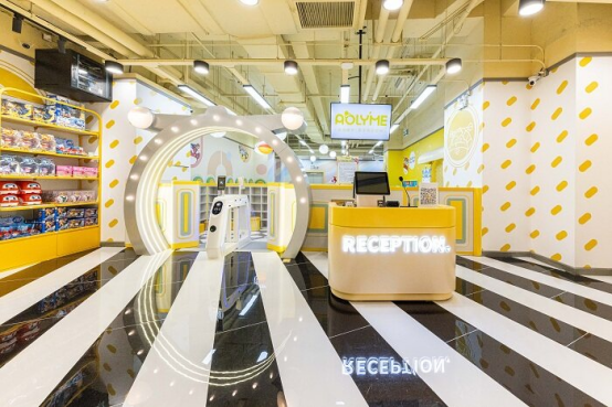店面依舊是以黃色為主色調(diào),但色調(diào)整體變?yōu)楦尤岷?、低飽和度的杏仁餅干黃,運(yùn)用夢幻而童真的馬卡龍色系,打造輕奢活力的風(fēng)格,搭配出時尚的景點(diǎn),富有想象力且充滿包容性,就像一個溫暖的“家”,驅(qū)散顧客心頭的陰霾。