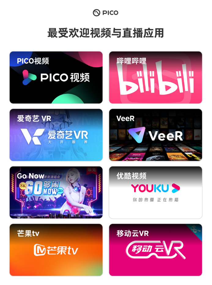 作為頭部XR品牌,PICO始終致力于幫助VR開啟大眾化之路,而豐富且優(yōu)質(zhì)的內(nèi)容和應(yīng)用生態(tài),是吸引大眾消費(fèi)者購買VR、使用VR的關(guān)鍵。近兩年全球VR技術(shù)日漸成熟,產(chǎn)品快速迭代,PICO作為國內(nèi)最完善的VR內(nèi)容平臺,亦在持續(xù)完善內(nèi)容生態(tài),積極加速與第三方的合作腳步,并在自制內(nèi)容方面大力投入,致力打造國內(nèi)應(yīng)用最豐富、最優(yōu)質(zhì)的VR內(nèi)容平臺。迄今為止PICO應(yīng)用商店已擁有超過200款國內(nèi)外優(yōu)質(zhì)的VR應(yīng)用。
