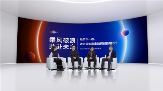 在政采云產(chǎn)品發(fā)布會(huì)“采云圓桌會(huì)”上,來(lái)自聯(lián)想集團(tuán)中國(guó)區(qū)商用大客戶(hù)政采電商業(yè)務(wù)負(fù)責(zé)人宿博、浙江時(shí)代新銳科技有限公司董事長(zhǎng)兼總經(jīng)理王翔、杭州商廬貿(mào)易有限公司總經(jīng)理歐邦海、政采云有限公司商家業(yè)務(wù)部總經(jīng)理王銳敏共同探討了“經(jīng)濟(jì)下一程,政府采購(gòu)商家如何創(chuàng)新增長(zhǎng)”的話(huà)題,各自分享了數(shù)字化轉(zhuǎn)型過(guò)程中的經(jīng)驗(yàn)。