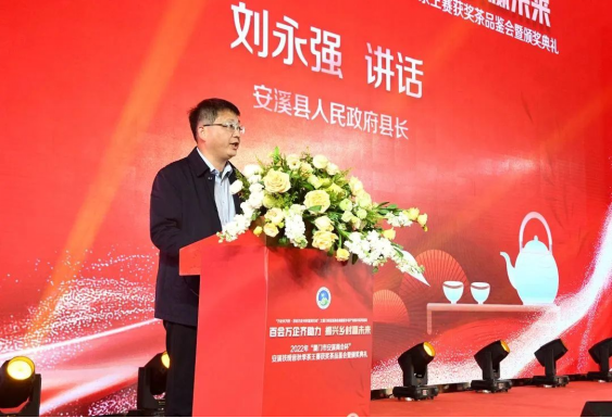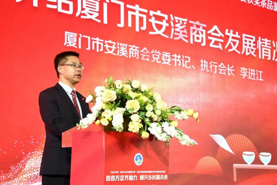 安溪縣縣長(zhǎng)劉永強(qiáng)在講話中表示,20多年來,廈門市安溪商會(huì)團(tuán)結(jié)帶領(lǐng)在廈鄉(xiāng)親弘揚(yáng)愛拼敢贏、靠自己的骨頭長(zhǎng)肉的精神,拼搏商海,盡顯風(fēng)采,在廈門特區(qū)留下了耀眼的茶鄉(xiāng)印記。難能可貴的是商會(huì)多年來傾心傾力,支持推動(dòng)家鄉(xiāng)茶產(chǎn)業(yè)發(fā)展,舉辦“廈門市安溪商會(huì)杯”茶王賽已成為規(guī)格最高的安溪鐵觀音茶葉賽事之一,激勵(lì)廣大茶農(nóng)茶人傳承匠心、用心制茶,提升安溪鐵觀音的美譽(yù)度和影響力。安溪是世界名茶鐵觀音發(fā)源地,中國烏龍茶之鄉(xiāng),近年來,安溪縣委縣政府緊扣三茶統(tǒng)籌,全面推進(jìn)茶產(chǎn)業(yè)高質(zhì)量發(fā)展。得益于茶產(chǎn)業(yè)的蓬勃發(fā)展,安溪走上了高質(zhì)量發(fā)展快車道,縣域綜合實(shí)力躍升至全國百強(qiáng)縣第53位,投資潛力第11位,已成為高新技術(shù)產(chǎn)業(yè)高地、宜居宜業(yè)的發(fā)展福地。今年,安溪縣委縣政府錨定GDP突破千億,緊扣6個(gè)工作抓手,奮力實(shí)施七大行動(dòng),加快全面建設(shè)具有茶鄉(xiāng)特色的現(xiàn)代化中等城市。真誠期待廈門市安溪商會(huì)和廣大鄉(xiāng)賢以各種方式參與其中,同時(shí)竭誠歡迎各界朋友到安溪品茗觀光、投資興業(yè)、共贏未來。