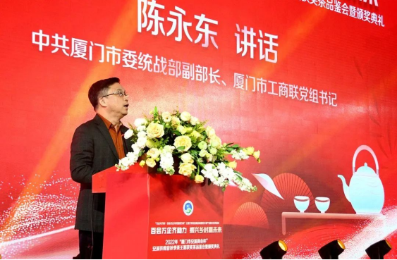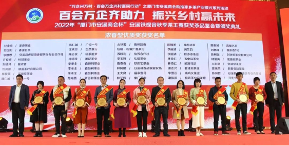 2月24日,由廈門市工商聯(lián)(總商會(huì))、安溪縣人民政府主辦,廈門市安溪商會(huì)承辦,中共安溪縣委統(tǒng)戰(zhàn)部、安溪縣茶業(yè)管理委員會(huì)辦公室、安溪縣工商聯(lián)協(xié)辦的2022年“廈門市安溪商會(huì)杯”安溪鐵觀音秋季茶王賽獲獎(jiǎng)茶品鑒會(huì)暨頒獎(jiǎng)典禮在廈門佰翔五通酒店盛大舉行。本次活動(dòng)是為了進(jìn)一步落實(shí)廈門市工商聯(lián)和安溪縣人民政府提出的“萬企興萬村·百會(huì)萬企興村富民行動(dòng)”計(jì)劃——廈門市安溪商會(huì)助推家鄉(xiāng)茶產(chǎn)業(yè)振興活動(dòng),也是“廈門企業(yè)家日”配套活動(dòng)之一。