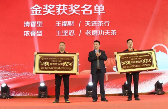 全國政協(xié)委員、廈門市工商聯(lián)主席柯希平為金獎(jiǎng)茶王頒獎(jiǎng)