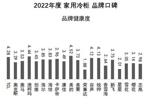綜合來看,2022年度家用冷柜TOP10品牌的口碑構(gòu)成如下圖所示: