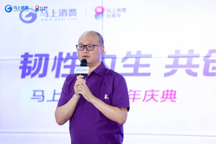 △馬上消費董事長趙國慶在八周年慶典上講話