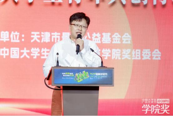 悅康藥業(yè)股份有限公司創(chuàng)始人、董事長(zhǎng)于偉仕先生致辭。悅康藥業(yè)成立于2001年,是以高端化學(xué)藥為主導(dǎo)的大型醫(yī)藥企業(yè)集團(tuán)、是以研發(fā)創(chuàng)新為驅(qū)動(dòng)的國(guó)家級(jí)高新技術(shù)企業(yè)。悅康藥業(yè)致力于為百姓研發(fā)用的起的好藥,始終在堅(jiān)守“營(yíng)造全球喜悅,關(guān)愛(ài)人類(lèi)健康”的愿景下不斷前行。今年6月,悅康藥業(yè)首次牽手學(xué)院獎(jiǎng),通過(guò)青年共創(chuàng),促進(jìn)健康意識(shí)的傳遞,提升品牌傳播的廣度與深度,以及在年輕群體當(dāng)中的認(rèn)知度和美譽(yù)度;通過(guò)年輕人的創(chuàng)意,讓品牌更有生命力。悅康藥業(yè)將致力于品牌年輕化工程,在校企合作、產(chǎn)教融合領(lǐng)域作出更多探索。