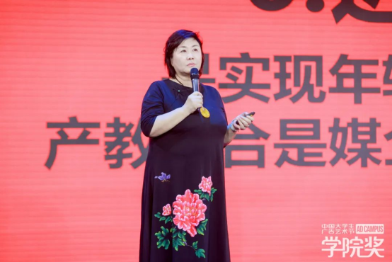 廣告人文化集團(tuán)總裁穆虹女士發(fā)表致辭演講。她表示,廣告人文化集團(tuán)不斷創(chuàng)新發(fā)展,聚合產(chǎn)業(yè)力量,打造廣告業(yè)新生態(tài),為校企搭建“鵲橋”,助力品牌強(qiáng)大,做品牌年輕化的引領(lǐng)者。關(guān)于大力探索產(chǎn)教融合新模式,穆虹女士提出看法:“先對(duì)接,再融合”。課程改革對(duì)接產(chǎn)業(yè)需求、對(duì)接專(zhuān)業(yè)崗位,從專(zhuān)業(yè)建設(shè)抓起,實(shí)現(xiàn)產(chǎn)教共贏。期待未來(lái)與企業(yè)、高校共同攜手為中國(guó)廣告事業(yè)的發(fā)展,為中國(guó)廣告教育的發(fā)展作出貢獻(xiàn)。