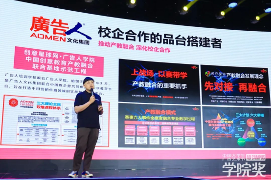創(chuàng)意星球董事、副總經(jīng)理李春生先生題為《做校企合作的提燈人和馬車夫》的演講。李春生先生詳細(xì)說明廣告人文化集團(tuán)的歷程、內(nèi)容生態(tài)圈與平臺(tái)戰(zhàn)略布局,表示:“廣告人文化集團(tuán)發(fā)展至今,積累了深厚的社會(huì)資源。作為熱愛教育事業(yè)的追夢(mèng)人,在各高校紛紛積極探索實(shí)踐教學(xué)、教育改革之路時(shí),廣告人文化集團(tuán)決心盡自己所能幫助高校在實(shí)踐教學(xué)的道路上走得更快。”