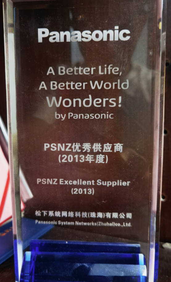 ▲松下授予裕威的“優(yōu)秀供應(yīng)商”獎(jiǎng)牌