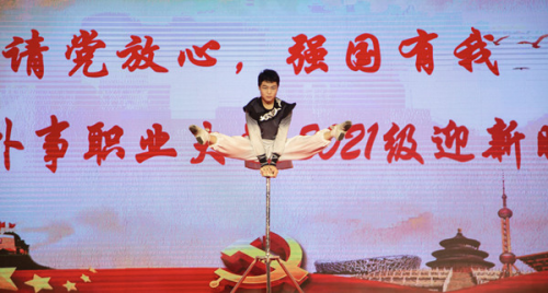 在孫彤宇副校長(zhǎng)演講之前,晚會(huì)呈現(xiàn)了精彩紛呈的多個(gè)節(jié)目。晚會(huì)在合唱《大魚(yú)》《明天你好》優(yōu)美的歌聲中拉開(kāi)帷幕,演唱者為五年一貫制2021級(jí)新生合唱團(tuán),深情的演唱、優(yōu)美的旋律引起了現(xiàn)場(chǎng)觀眾共鳴。配樂(lè)詩(shī)朗誦《請(qǐng)黨放心 強(qiáng)國(guó)有我》讓人們看到祖國(guó)新一代對(duì)實(shí)現(xiàn)強(qiáng)國(guó)夢(mèng)的信心。由我??罩谐藙?wù)專業(yè)學(xué)生帶來(lái)的《空乘禮儀展示》在活力四射的音樂(lè)中上演,俊男靚女著裝整齊,儀態(tài)大方,展示空乘學(xué)子的青春風(fēng)采。來(lái)自山東藝術(shù)學(xué)院的青年歌唱家李章棟傾情演唱《燈火里的中國(guó)》,旋律悠揚(yáng)、緊扣時(shí)代,展現(xiàn)了燈火里的繁花似錦和安詳寧?kù)o、奮發(fā)圖強(qiáng)和生生不息。