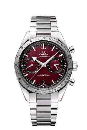 歐米茄超霸系列腕表最初為賽車設(shè)計(jì),后來因其卓越的性能成為陪伴人類完成登月任務(wù)的首枚腕表。同時(shí),超霸腕表也是地球冒險(xiǎn)家的青睞裝備。這款超霸’57腕表采用勃艮第紅色表盤,金屬表圈飾有激光鐫刻的黑色測(cè)速刻度。鍍銠小時(shí)刻度和”闊箭”指針均覆有白色Super-LumiNova夜光涂層。腕表內(nèi)部搭載歐米茄9906至臻天文臺(tái)機(jī)芯。