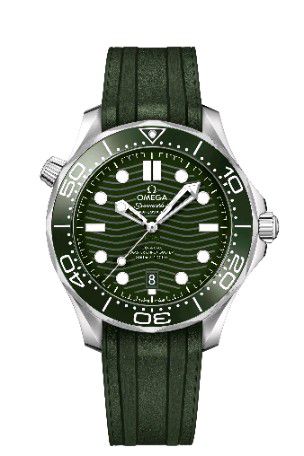 這款海馬系列300米潛水表搭配綠色波紋表盤。表殼為42毫米,采用精鋼材質(zhì)打造,經(jīng)拋光和拉絲處理,搭配單向旋轉(zhuǎn)拋光綠色陶瓷表圈,飾以由“大明火”工藝制成的白色琺瑯潛水刻度,12點(diǎn)位設(shè)有覆以Super-LumiNova夜光涂層的圓點(diǎn),在暗黑環(huán)境中呈現(xiàn)以綠色效果。旋入式表背經(jīng)拋光和拉絲工藝打磨,飾有波紋邊緣,透過藍(lán)寶石玻璃表背,可以欣賞到歐米茄8800至臻天文臺(tái)機(jī)芯的運(yùn)轉(zhuǎn)美態(tài)。對(duì)于喜愛運(yùn)動(dòng)風(fēng)格的人士而言,腕表搭配一體式綠色橡膠表帶,更便于運(yùn)動(dòng)佩戴。
