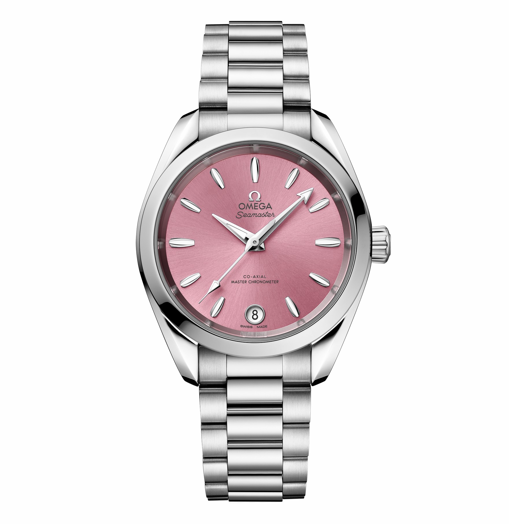 海馬系列 Aqua Terra 150米38毫米至臻天文臺(tái)表采用對(duì)稱設(shè)計(jì),表殼和表冠均以拋光精鋼材質(zhì)打造,表背采用波紋邊緣設(shè)計(jì)。6點(diǎn)位設(shè)有日歷窗,鍍銠指針和小時(shí)刻度均覆有白色 Super-LumiNova 夜光涂層。不銹鋼表鏈采用精美的圓弧形鏈節(jié),經(jīng)拋光和拉絲處理。內(nèi)部搭載歐米茄8800至臻天文臺(tái)機(jī)芯,通過(guò)由瑞士聯(lián)邦計(jì)量研究院(METAS)核準(zhǔn)的至臻天文臺(tái)認(rèn)證,其精準(zhǔn)度、防磁性和整體性能均達(dá)到行業(yè)的更高標(biāo)準(zhǔn)。其表盤(pán)由黃銅制成,經(jīng)過(guò)漆面處理,由中央向四周呈現(xiàn)出太陽(yáng)射線的打磨效果。各種色彩中,橘黃色古典氣息十足,雅致而沉穩(wěn)。砂巖色樸實(shí)無(wú)華,屬于低調(diào)而休閑的實(shí)力派。